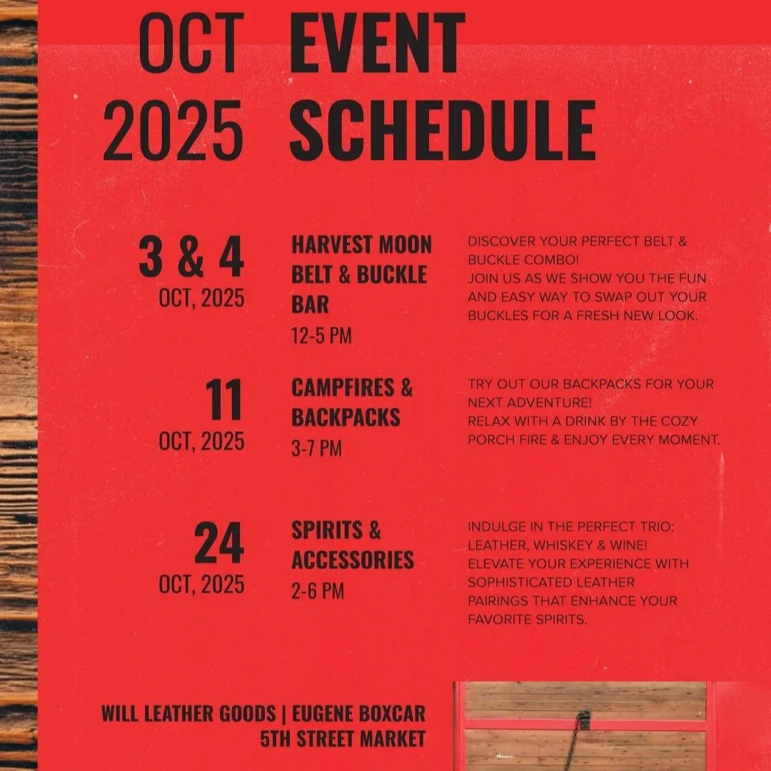 Join Will Leather Goods at the Eugene Boxcar for fun activities, all month long!