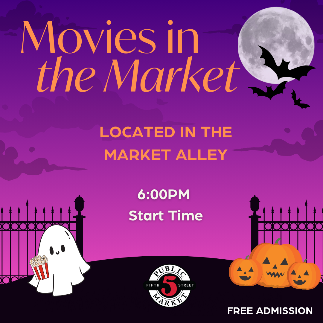 Join us in the 5th Street Market Alley for family-friendly movies on the Big Screen, all month long! Movies start at 6:00 PM and are free to enjoy.