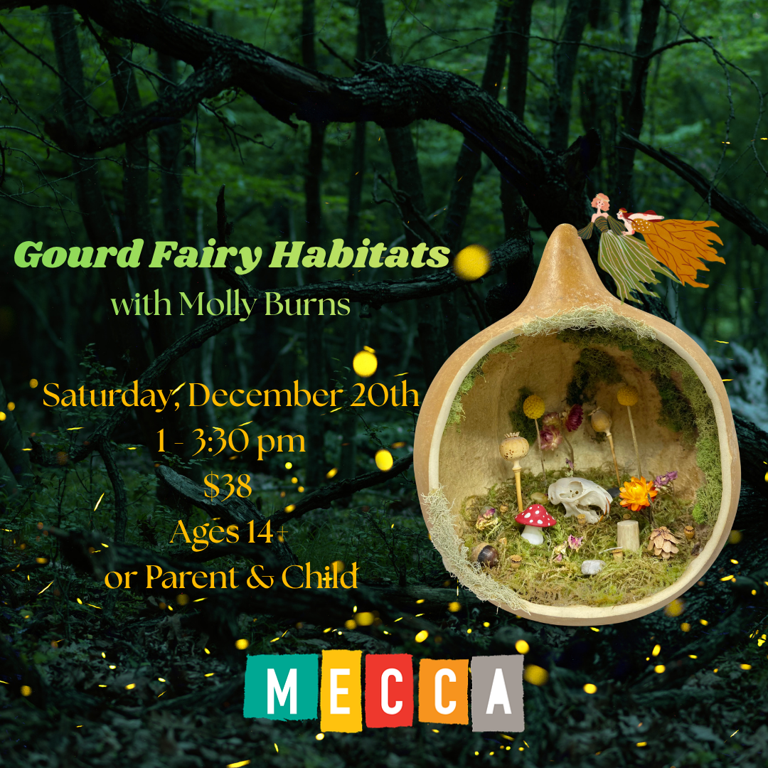 Come join us at MECCA 555 High St to celebrate Winter Solstice. Join us for a magical event dedicated to creating habitats for our fairy friends with experienced crafter, Molly Burns! This in-person gathering will bring together nature enthusiasts and fairy lovers to learn how to design and build enchanting homes for these mystical creatures using natural materials. Get hands-on experience crafting miniature houses from hollowed-out gourds. Let your creativity soar as you connect with nature and unleash your inner child. Don't miss out on this whimsical opportunity to bring a little magic into your life!