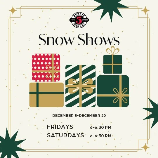 No matter the forecast, it's snowing at 5th Street Public Market! Experience the magic of snowfall in the Market Core. This is a free event for all ages.