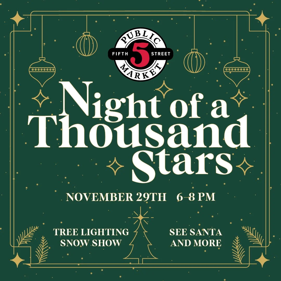 Kick off the holiday season on Friday, November 28th with a truly magical experience at 5th Street Public Market's Night of a Thousand Stars!